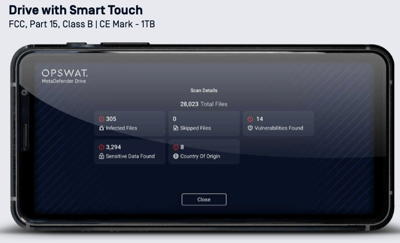 - OPSWAT MetaDefender Drive with Smart Touch. OPSWAT launched a compact, handheld device for scanning and validating “transient assets” (think vendor laptops and the like) before they are allowed to connect to the network, and particularly to networks in critical infrastructure organizations. The device – called MetaDefender Drive with Smart Touch – has up to seven anti-malware engines, file-based vulnerability assessment, proactive data loss prevention (DLP), and country-of-origin detection. It also includes boot-level analysis for deep inspection of cyber assets. With a simple touch interface and requiring no installation, the device is easy to use, even in high-security, air-gapped facilities. Available immediately. OPSWAT
